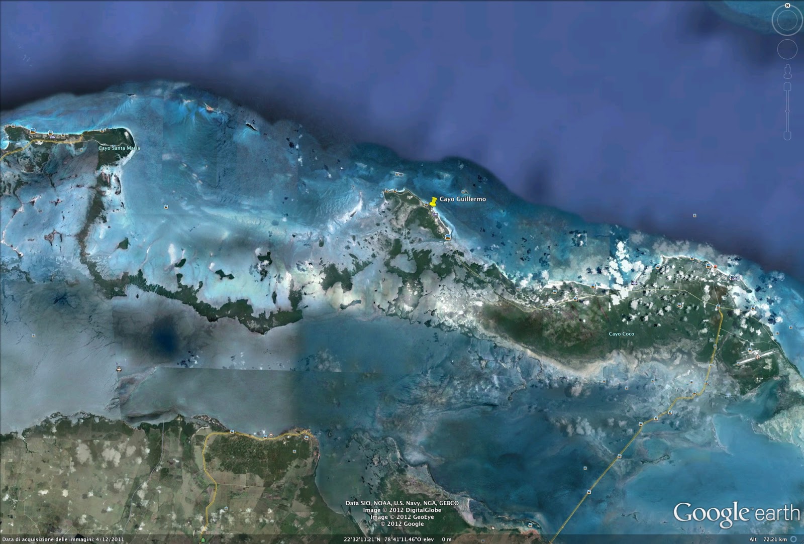 Questa sorta di visita virtuale consentita da Google Earth serve a confrontare le caratteristiche specifiche aiutano a distinguere le diverse mete balneari, andando oltre la sostanziale equivalenza qualitativa. Per esempio, Cayo Guillermo (immagine satellitare al centro) appare immerso