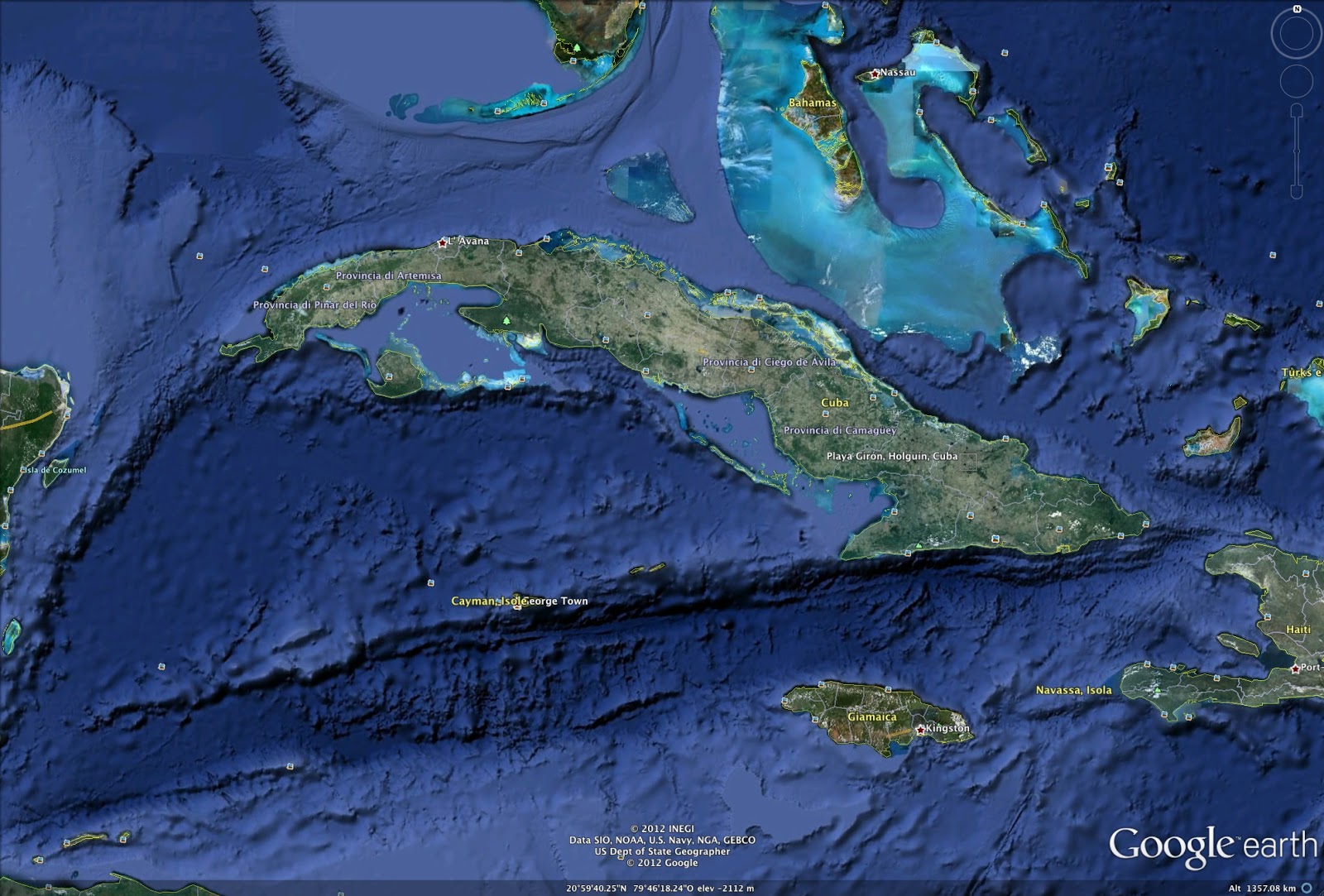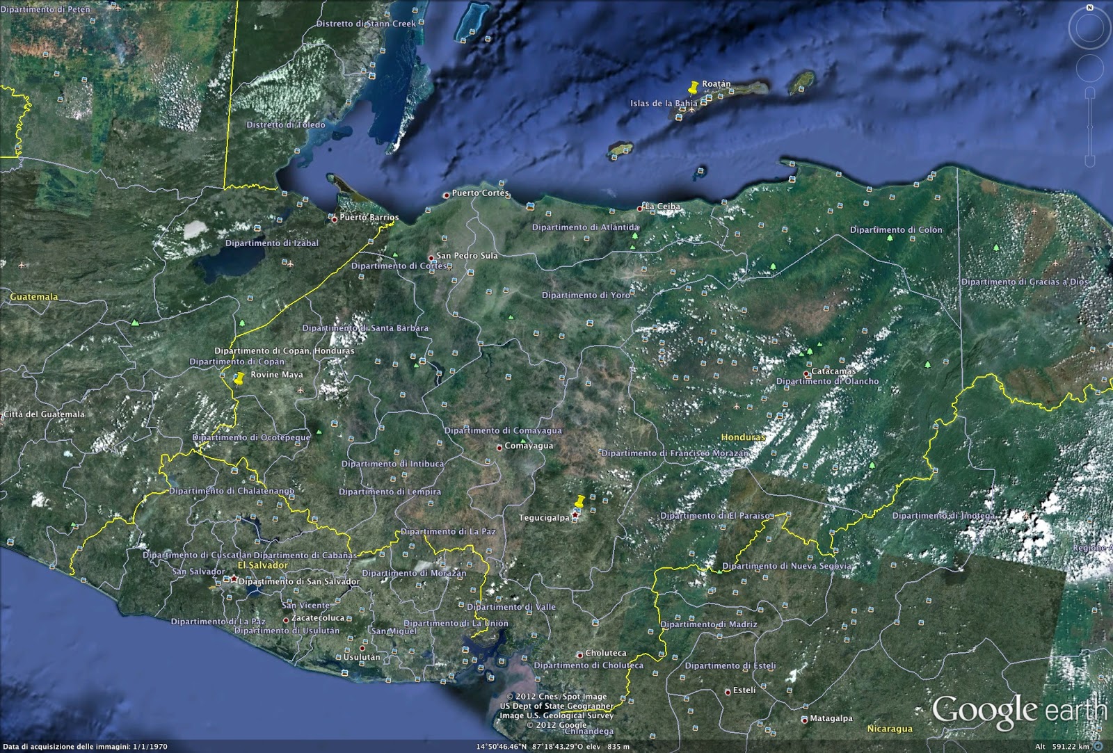 attrattive naturalistiche e culturali. Ma si comincia con un sopralluogo cartografico che grazie a Google Earth permette di esaminare sia l’intero paese (Cuba a sinistra, Honduras a destra) per capire distanze, dimensioni e rapporto con il Mar dei Caraibi; successivamente avvicinandosi vedere con maggiore dettaglio le caratteristiche dei luoghi, ovviamente a fini turistici.