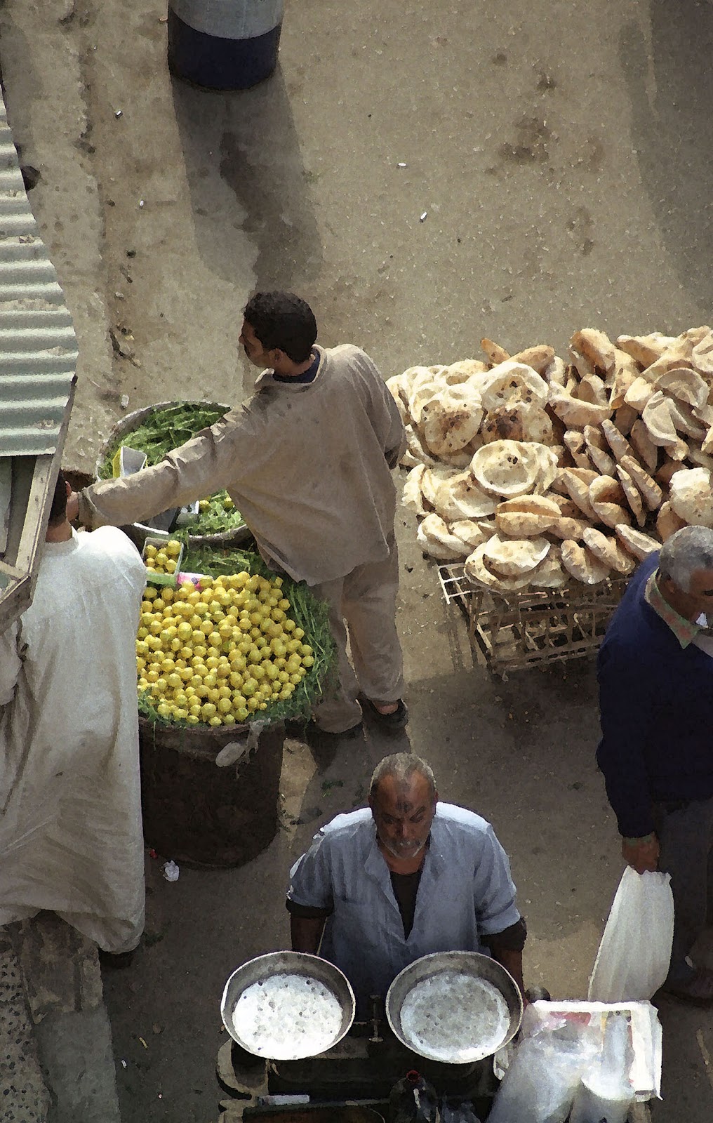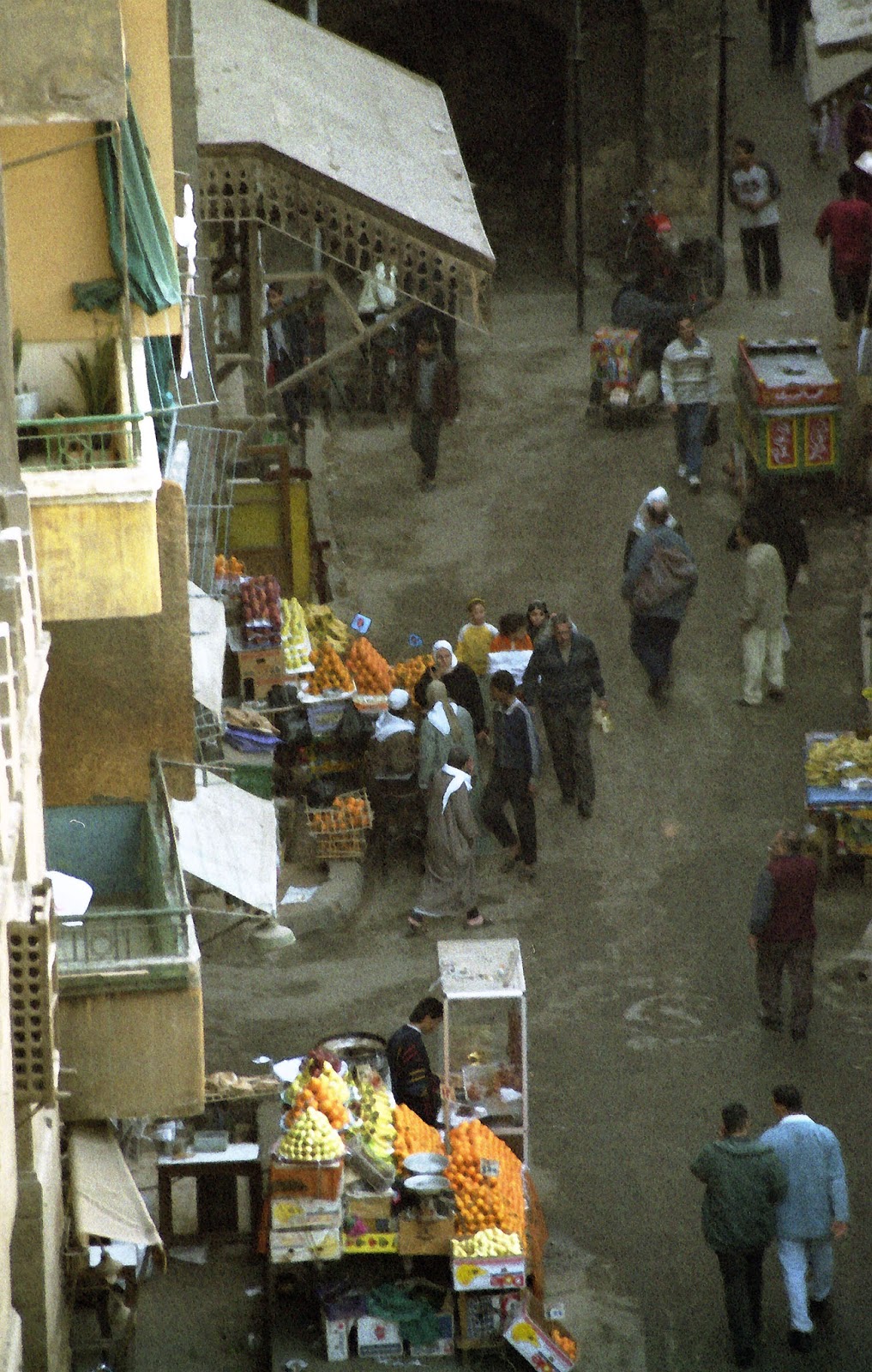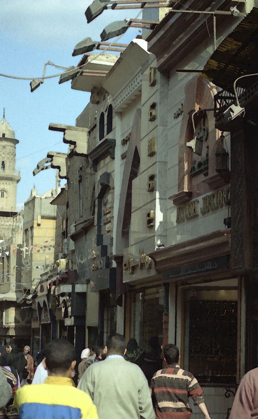 Cristallizzare in una o più foto la vitalità di un bazar è sempre impresa ardua. Un album fotografico nel suo insieme riesce forse meglio a documentare la gamma delle persone, delle merci e delle forme che si addensano nelle strade circostanti le moschee di Al Azhar e Al Hussein. Come vuole la migliore tradizione araba, commerci di tutte le specie si accavallano e si mescolano con i luoghi per l’incontro e il ristoro. A seconda delle stagioni le strade si animano di giorno e di notte in un continuum al quale bisogna abituarsi per cogliere i principi ordinatori di questi moti apparentemente caotici.