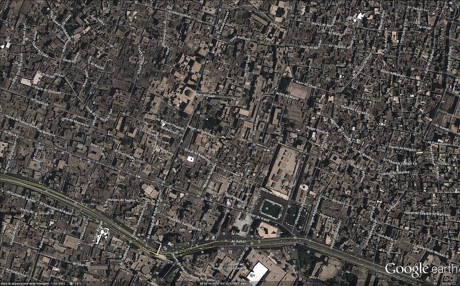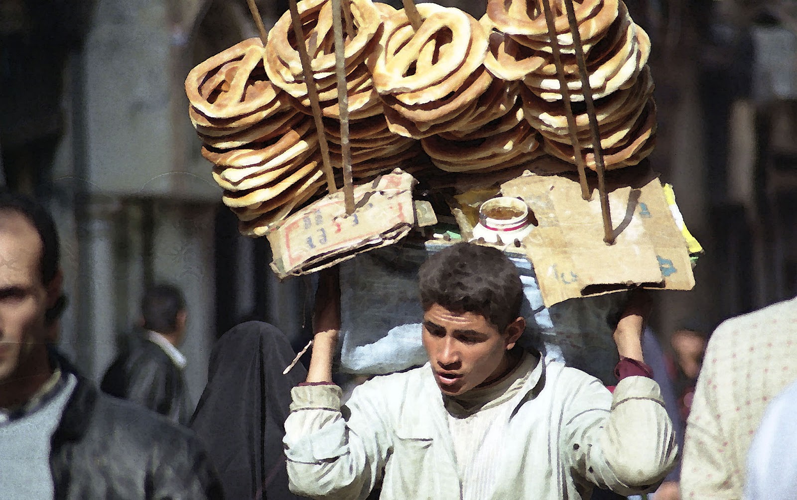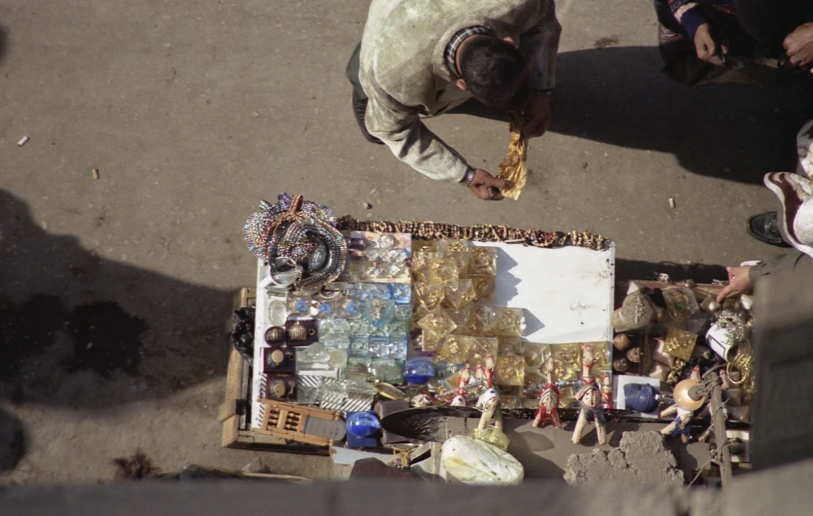 Cristallizzare in una o più foto la vitalità di un bazar è sempre impresa ardua. Un album fotografico nel suo insieme riesce forse meglio a documentare la gamma delle persone, delle merci e delle forme che si addensano nelle strade circostanti le moschee di Al Azhar e Al Hussein. Come vuole la migliore tradizione araba, commerci di tutte le specie si accavallano e si mescolano con i luoghi per l’incontro e il ristoro. A seconda delle stagioni le strade si animano di giorno e di notte in un continuum al quale bisogna abituarsi per cogliere i principi ordinatori di questi moti apparentemente caotici.