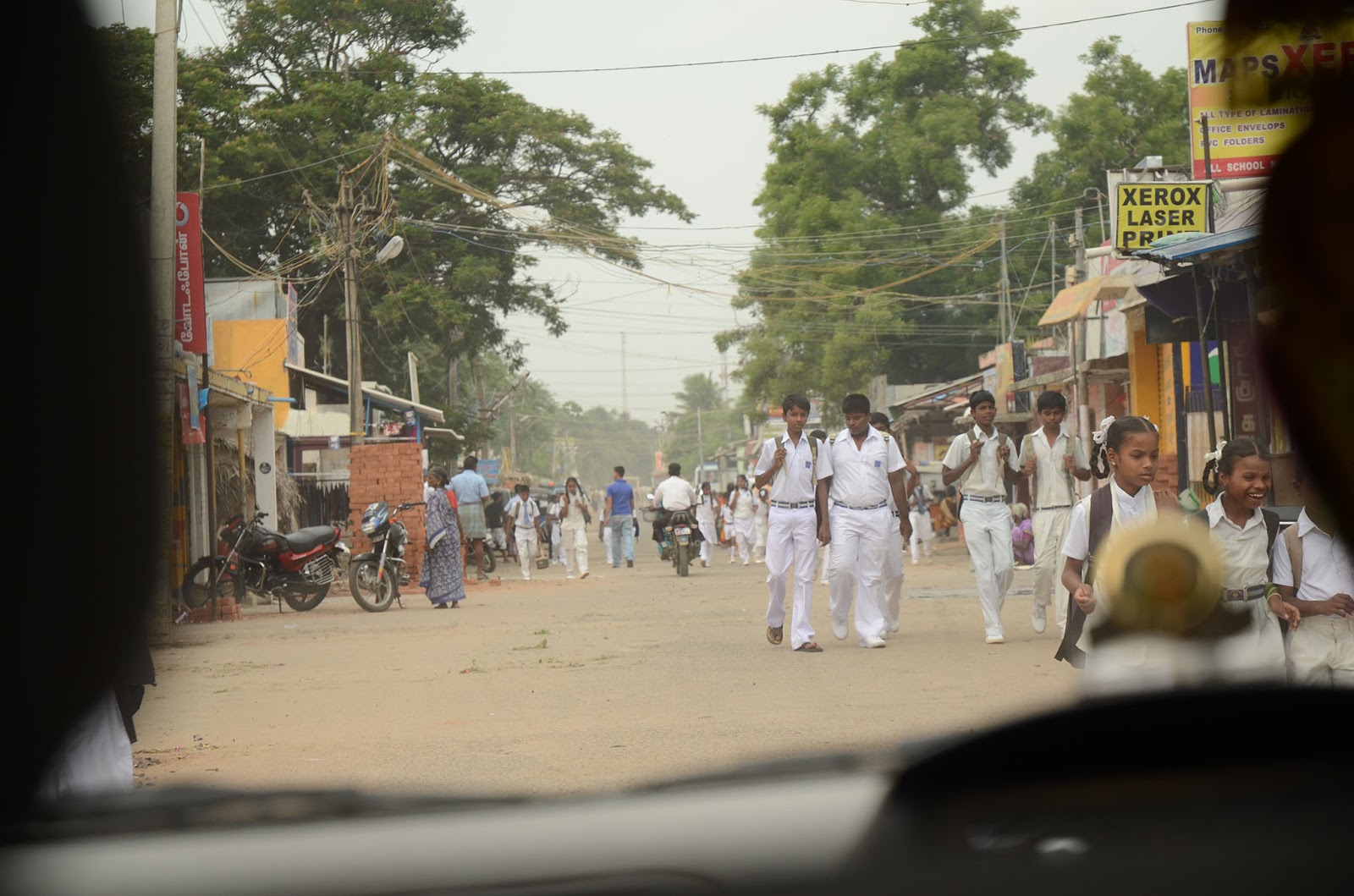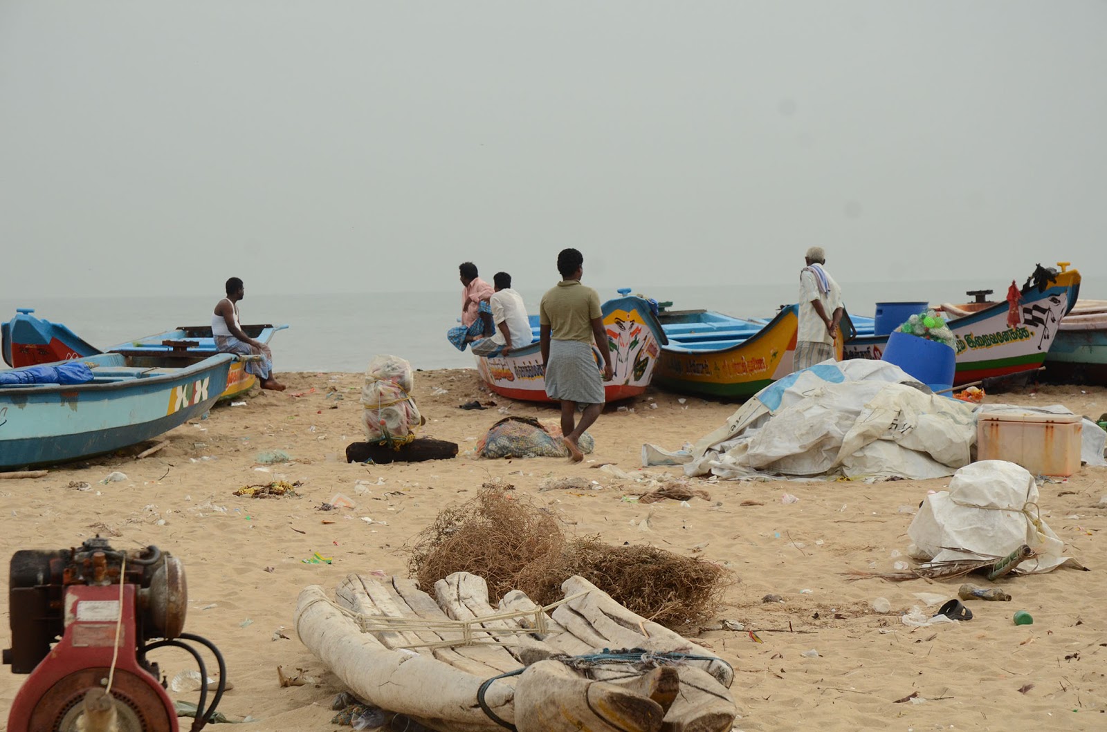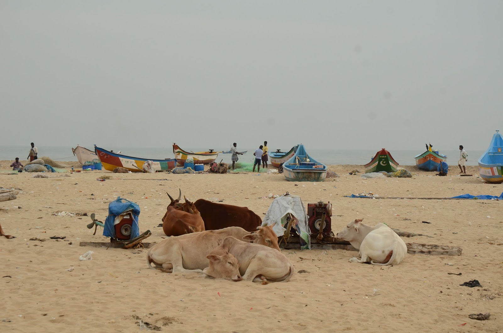 La ordinaria straordinarietà dell’India: una spiaggia davanti al quartiere dei pescatori con i pescatori che chiacchierano e si preparano con calma alla prossima uscita in mare. Barche relativamente moderne e tradizionali. Intorno vacche pigramente sdraiate sulla sabbia, capre e corvi in movimento. Subito dietro una giostra arrugginita e un piccolo tempio appena protetto da un muro di cinta. È mattina presto e gli studenti stanno andando a scuola.